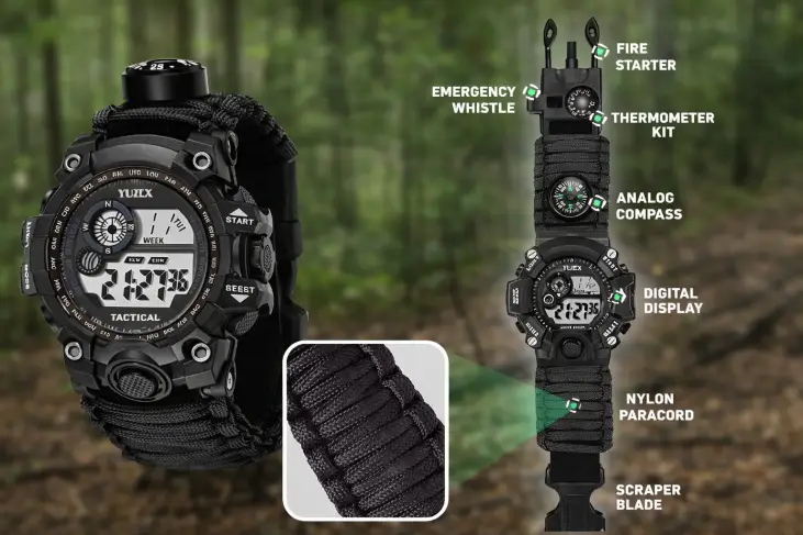 Designed for adventure and everyday wear, EliteX Tactical Watch blends rugged durability with practical functionality. Whether you’re hiking deep trails, camping overnight, or handling everyday tasks, it keeps essential outdoor tools right on your wrist.